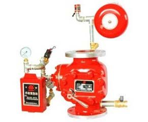 電氣引導方式是由火災報警系統來實施控制,當火災發生時,火災報警系統發出控制信號,打開電磁閥,使膜片室壓力釋放,雨淋閥開啟,大量的水從開式噴頭噴出,同時一小部分水通過報警管路驅動水力警鈴、壓力開關,發出報警信號,以實現滅火、報警之目的。濕式引導方式是將膜片室和濕式傳動管網連接,濕式傳動管網上裝有玻璃球灑水噴頭,當火災發生時,環境溫度升高,灑水噴頭動作,釋放膜片室的壓力,開啟雨淋閥。